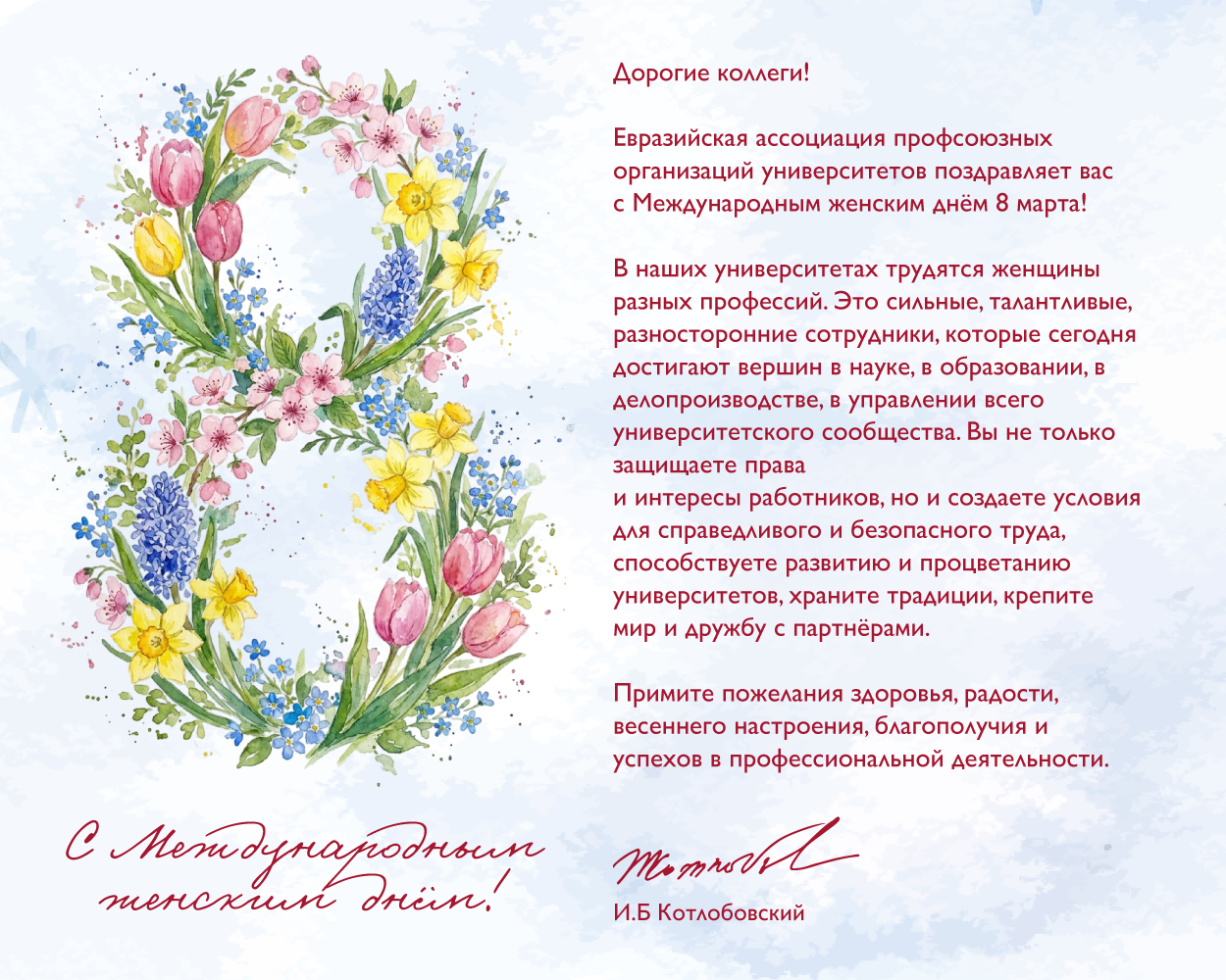 ЕАПОУ делает все для укрепления дружбы и взаимовыгодного сотрудничества между университетами и их профсоюзными организациями в интересах развития образования в наших странах.