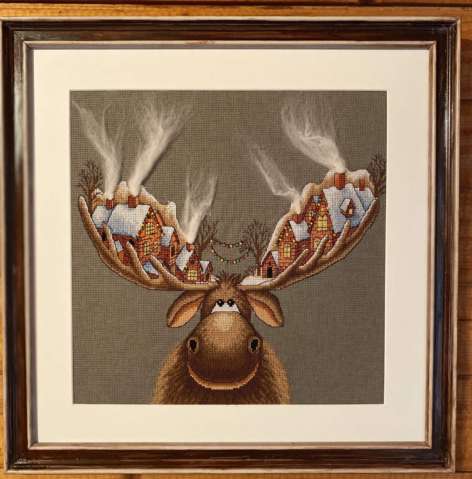 Рождественский лось, вышивка крестиком, тематика «Мой дом», автор: Диана Владимировна Алиева, ассистент Центра проектной деятельности Московского политехнического университета.