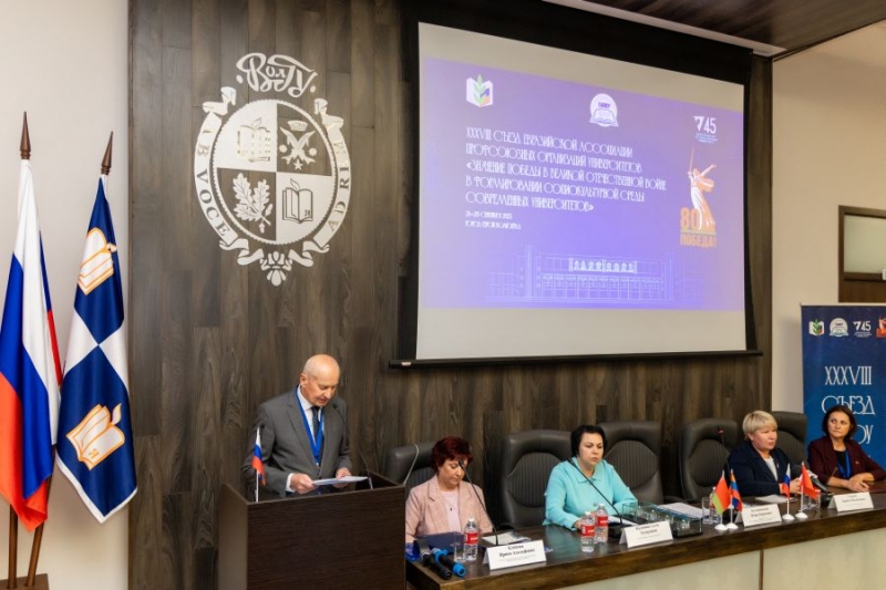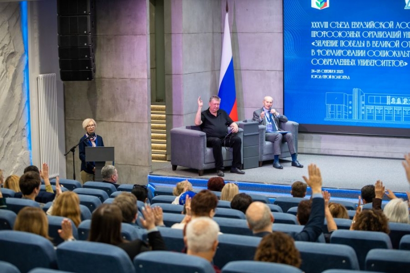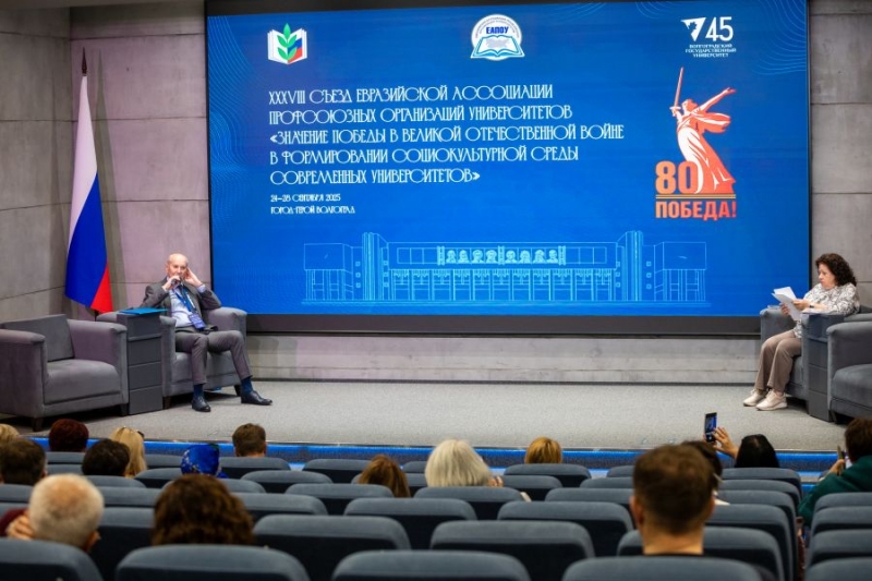 XХXVIII Съезд Евразийской ассоциации профсоюзных организаций университетов состоялся 24 — 28 сентября 2025 года в городе-герое Волгограде на базе Волгоградского государственного университета. Тема съезда: «Значение Победы в Великой отечественной войне в формировании социокультурной среды современного университета».